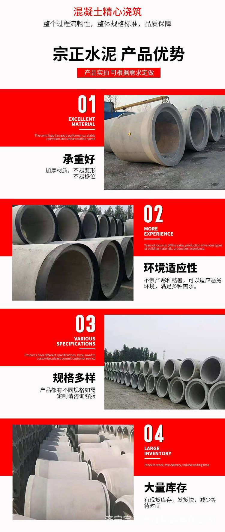 DN1200*3000II级二级承插式钢筋混凝土管水泥管涵管 压力管砼管2级
